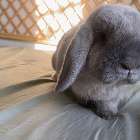 Han är en glad kanin som älskar att umgås.