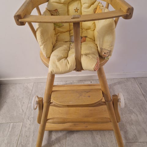 IKEA barnbord och stol i trä med vit bordsskiva. Bordet har en vit yta och trädetaljer, med en tillhörande stol i trä. Passar för barn och kan användas för olika aktiviteter såsom lek och måltider.