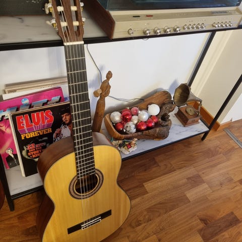 En klassisk gitarr av modellen Admira Alba, i mycket gott skick. Inga märken, repor eller sprickor.