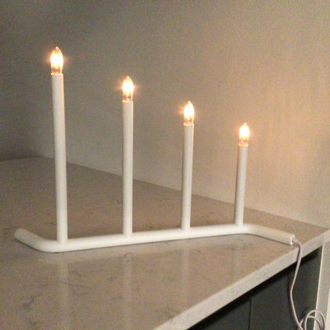DEFEKT - de två högra ljushållarnas kontakter behöver åtgärdas, i nuläget lyser inte de två lamporna. Enligt elektriker skall det gå att åtgärda. I nuläget, innan du är åtgärdat, lyser inga lampor.