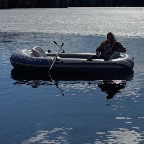 Båten är designad för två personer och har en längd på 200 cm. 100 cm bred, Den är tillverkad av slitstarkt material och utrustad med fästen för motor och andra tillbehör.