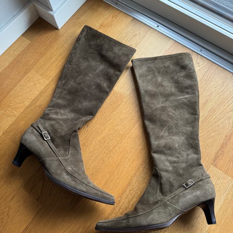 Perfekt klackhöjd och bekväm klack helt i mocka i röd härlig färg. Finns centralt i Stockholm. Skickas ej.