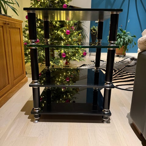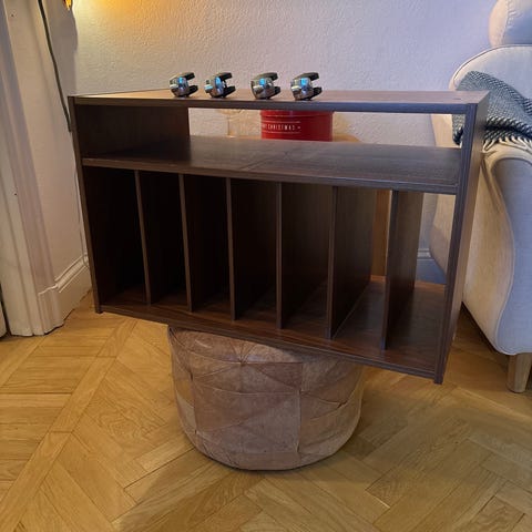 Fint stereo-torn/stereoskåp till vinylspelare. I fint skick utom mindre skada på sista bilden.
