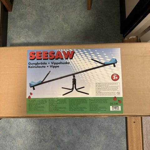 Säljer en blå gungbräda i form av en val från Little Tikes.