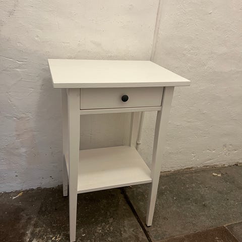 Säljer två stycken Hemnes nattduksbord från IKEA. Borden är inköpta vid olika tillfällen och har därför något olika färg då den ena versionen är vitmålad och den andra vitlackerad. Bordet som är målat har lite färg som har lossnat på bordsskivan (se bild).