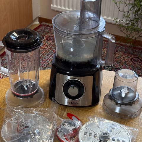 Säljer en Bosch MCM3501M matberedare i mycket gott skick. En multifunktionell matberedare i svart och rostfritt stål som gör matlagningen enkel och rolig!