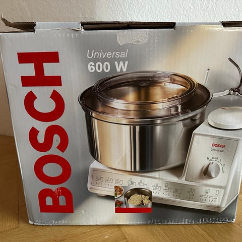 Ingår: bunke 2,3 L, mixer 1 L, skivor, knivar, degredskap, vispskiva och manual