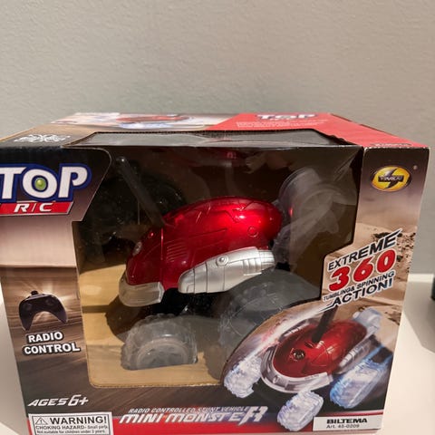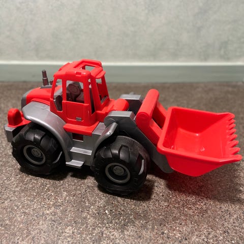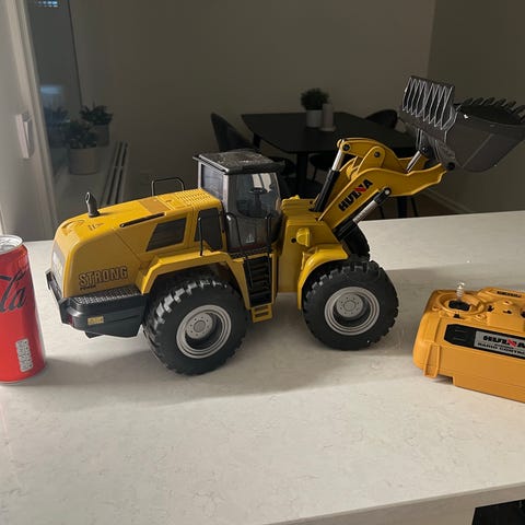 Radiostyrd hjullastare knappt använd laddare ingår. Handkontroll 2st AA batterier. Längd 38cm bredd 14,5cm höjd 15cm Nypris 649:- nu 400:-