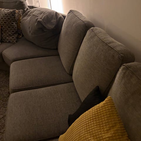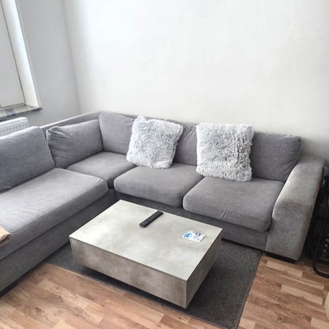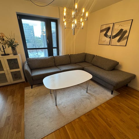 Beige hörnsoffa i tyg