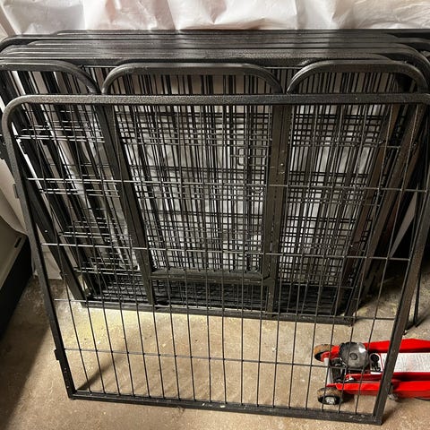 Helt ny hage enl bild 60 hög bred 6×60cm går att plocka isär. hämta den igår på posten finns grind på den