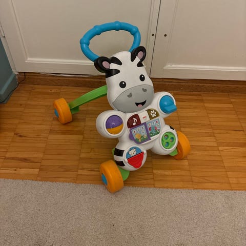 Lära-gå-vagn med spännande funktioner och ljud att upptäcka med händerna och öronen. Batterier ingår.