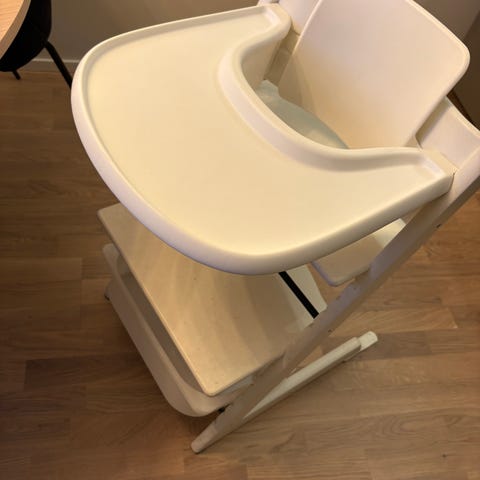 Stokke Tripp Trapp stol i färgen storm Grey inkl baby set, bricka och tippskydd i färgen storm Grey. Fint skick.