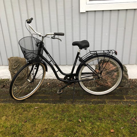Elegant och snygg, klassisk stadscykel för damer, med sju växlar från Shimano. Tillsammans med rostfri kedja gör detta cykeln driftsäker och i det närmaste underhållsfri. Cykeln levereras med dynamodriven lampa fram och batterilampa bak. Skärmar, stöd, pakethållare, kedjeskydd och cykelkorg är standard. Specifikationer: - Ram: Velo City Alloy - Styrlager: Chin Haur CH-919BW Quill - Gaffel: Velo City Steel - Styre: Alloy 620 mm - Handtag: Velo VLG-519 - Styrstång: Hsin Lung Quill 40 mm - Sadelstång: Hsin Lung SP-C207 27,2 x 300 mm - Sadel: Velo VL-6142 - Växelreglage: Shimano SL-7S31 Nexus - Bromsar: Tektro 855ALS - Bromshandtag: Tektro CL-331-RS - Kassett: Shimano 18T - Kedja: KMC Z-610RB - Vevparti: Prowheel PRA-115 38T - Vevlager: Shimano BB-UN26 - Fälgar: Araya AR-713 - Nav: Shimano DH-2N35-NT/SG-C3000-7C-DX Nexus 7 - Ekrar: 14 G Stainless Steel w/Brass nipple - Däck: Schwalbe Delts Cruiser 28 x 1,40” - Åtföljande utrustning: Lampset, stöd, pakethållare, skärmar, kedjeskydd, cykelkorg