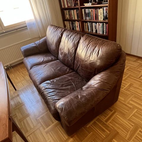 Grön skinnsoffa köpt på 90-talet av det finska föredraget Interface. Liknade märke och utförande också intressant