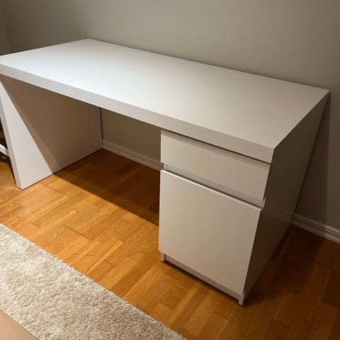 Hemnes skrivbord med tilläggshylla säljes. Några mindre märken på skrivbordsskivan.