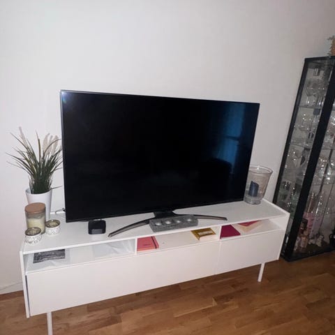 Säljer en vit hylla, Kallax, från Ikea. Ikea säljer den som en TV-bänk men vi har haft den som ett sideboard/en förvaringshylla.