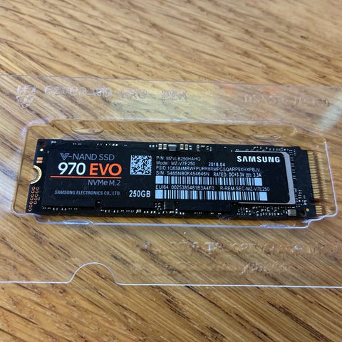 Samsung MZ-VLB2560 M.2 NVMe SSD med en lagringskapacitet på 256GB. Enheten är designad för att passa i M.2-platser och erbjuder snabb dataöverföring med NVMe-teknik.