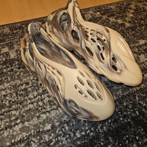 Ett par Yeezy Foam Runners i färgen Stone sage stl EU44 1/2 säljes. Skorna är lätt använda vilket främst syns på sulan. Kvitto från onlineköp från goat finns. Pris: 800:-