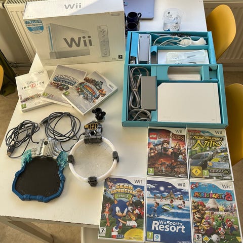 Säljer ett omfattande Nintendo Wii-paket. Tar också Game cube spelar Innehåller två konsoler (en svart och en vit), Wii Balance Board, ett urval av spel, Skylanders-figurer och tillbehör som Wii-kontroller. Perfekt för familjen eller samlaren.