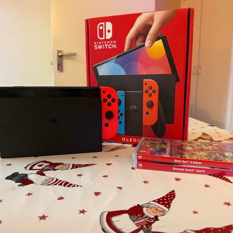 Nintendo Switch, 3 spel, minneskort och 3 dosor