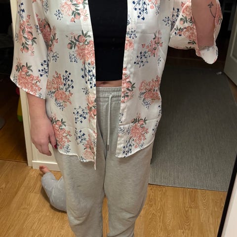 Snygg både som morgonrock och som kimono till ett par jeans el.dyl.