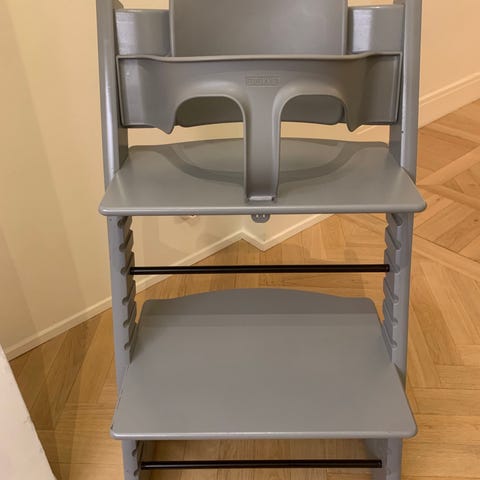 Stokke Barnstolar barnstol tillverkad i trä. Justerbar sits och fotstöd för anpassning efter barnets storlek. Designad för barn och erbjuder stöd och komfort vid matbordet eller andra sittplatser.