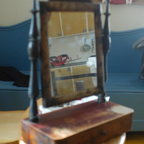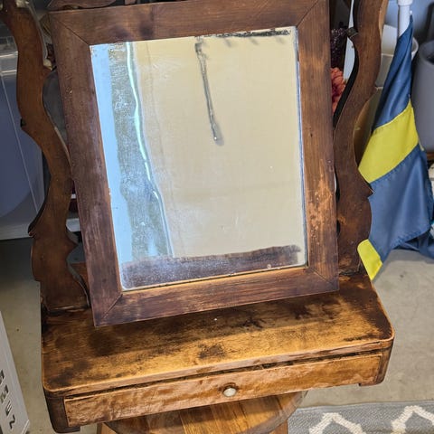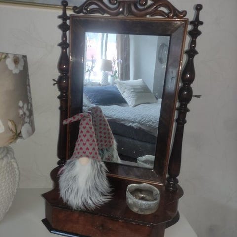Antik pigtittare med en liten låda i shabby chic stil och målad vit.