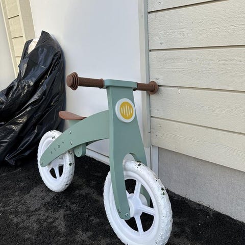 Inköpt sommaren 2025 så ganska ny. Varit supernöjda med den. Charmig flätad korg medföljer.