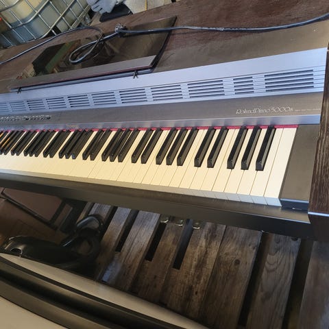 Pianostol ingår i priset, smart förvaring i sitsen för notböcker.