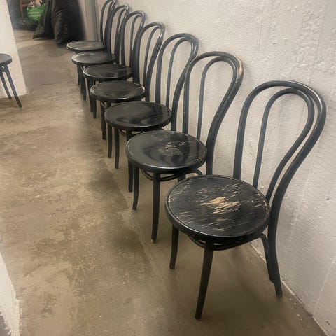 GILLIS LUNDGREN, Stolar, 3 st, "Öglan", plast, IKEA, vita med klädd sits från 1900-tal i bruksskick se bilder. Priset är för alla stolarna.