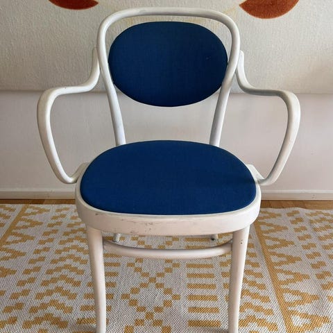 Retro stolar 6 st i massiv körsbär med klädd sits, liknar ”grange” stolar från 1900-tal i fint skick se bilder. Lätt att klä om dynorna för den som vill.
