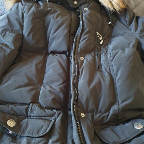 KappAhl Vinterjacka i storlek M, svart färg och tillverkad i polyester. Jackan är designad för kvinnor och passar för kalla väderförhållanden.