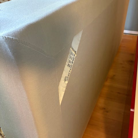 90 cm säng / resårbotten från IKEA. Har skruvhål från sänggavel, se bild.