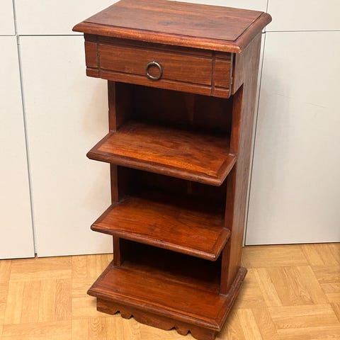 Sängbord, Svenska Möbelfabrikerna Bodafors. Betsad Björk och Alm. Beslag i mässing. Bredd 46, djup 33, höjd 60 cm. 1500 kr.