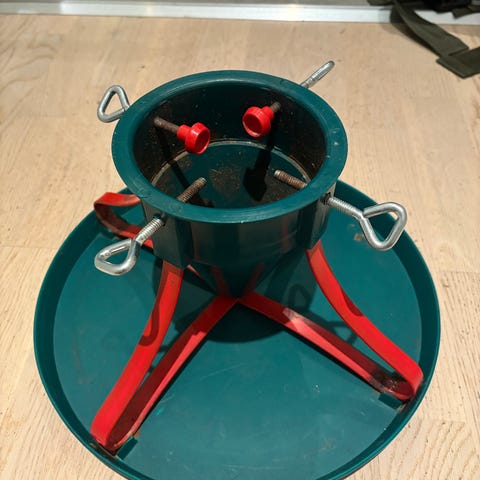 Bra och stabil julgransfot i metall med skruvar så granen står stadigt.