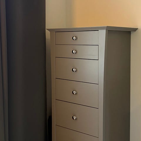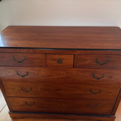 Stilren och klassisk byrå Aoko från Mavis. 7 lådor. Begagnat skick men skavanker som ej syns speciellt mkt. Repad på ovansidan. Nedersta lådan går ej att skjuta in helt. Marginell skillnad mot övriga. Se bilder.