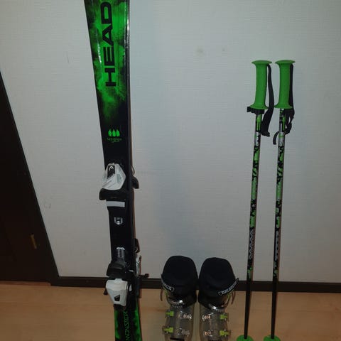 Helt paket för barn 5-7 år. Använt 1 vecka. Nästan som nya. 100 cm skidor och 33 strlk pjäxor.