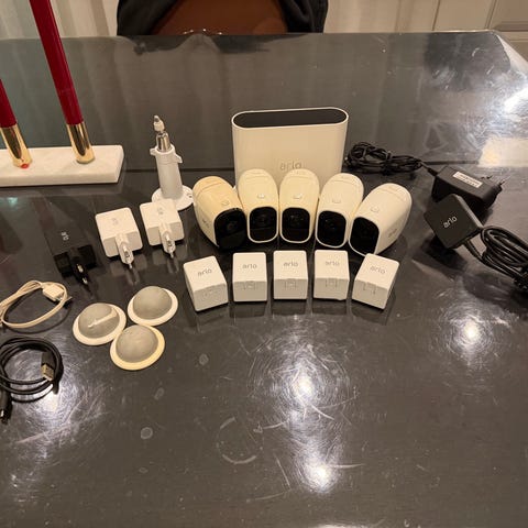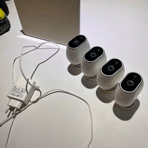 Arlo Pro 5 2K övervakningskamera i 2-pack, färg vit. Kamerorna erbjuder 2K-upplösning för förbättrad bildkvalitet och används för säkerhetsövervakning i hemmiljö eller liknande. Pluss 1 kamera hus.Produkterna levereras i originalförpackning.