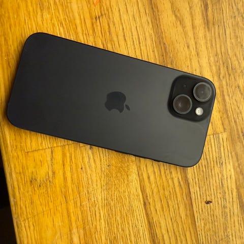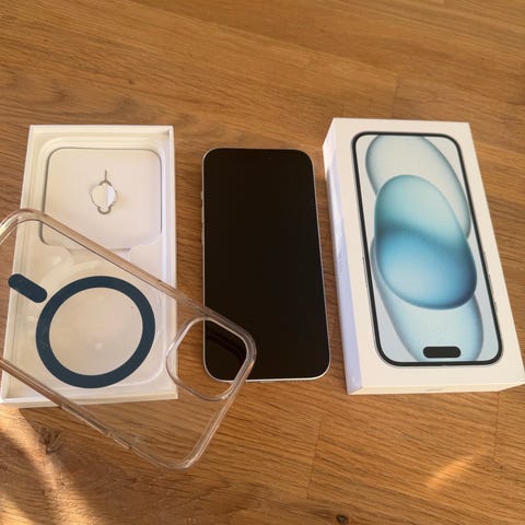Säljer en iPhone 15, 128 GB i färgen svart.