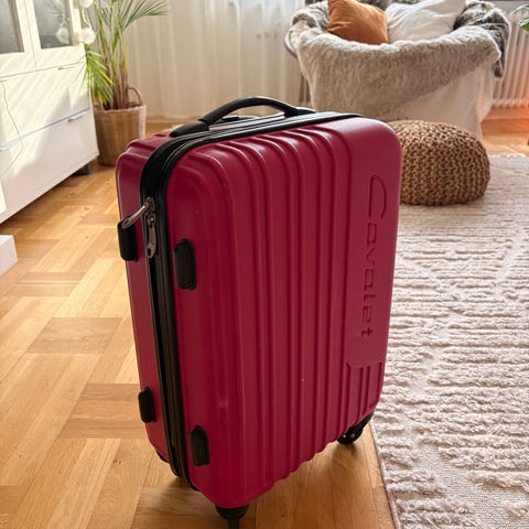 Ett av hjulen saknar 1 fäste på undersidan (Se bild) men påverkar inte användningen alls, den sitter ändå bra på väskan. Därav lite rabatterat pris.