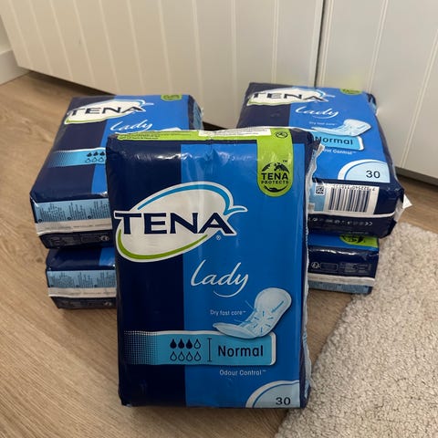 O.B. ProComfort tamponger med applikator. Två förpackningar. Inte hela men innehåller fortfarande många (har inte räknat). Always Ultra Day & Night bindor i storpack 18 styck, oöppnad. Discreet tamponger 16 styck, oöppnade. Några styck tamponger för sig. Produkterna är avsedda för menstruationsskydd och inkluderar olika storlekar och skyddsnivåer.