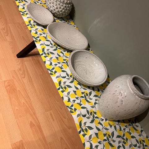 Set med tre dekorativa krukor i keramik