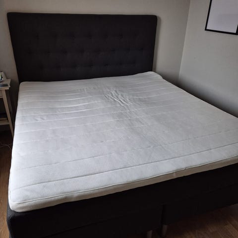 Måste hämtas senast 28/2! Jag har denna otroligt sköna kvalitetssäng (blå) från EMhome i Tenhult att sälja då den inte får plats i nya lägenheten. Se mer information på bild nr 4.