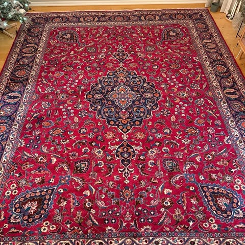 Denna persiska Bakhtiar var handknuten av nomader från Bakhtiari-stammen. Denna persiska matta spelar med färgerna på Orienten i vackra mönster. Utformningen av dess ornament är inspirerad av persiska trädgårdar. Den så kallade traditionella trädgårdsdesignen har blivit mycket populär i den västra världen genom åren. Dess höga knutdensitet i kombination med det starka garnet lovar långvarig glädje av persisk mattekonst.