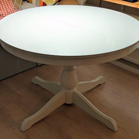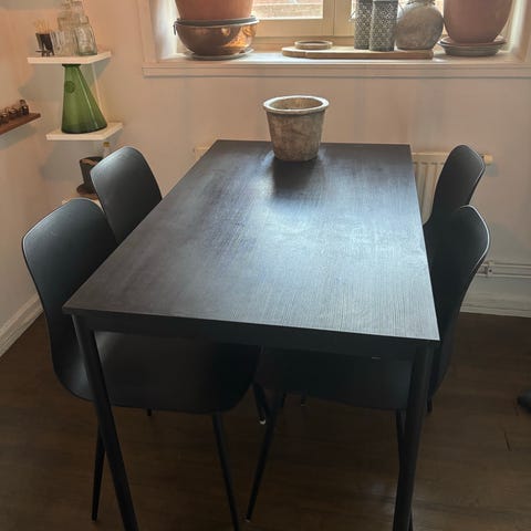 Ett rund matbord i svart trä gott skick små märken/tecken på användning (se bild).Passar för matsal eller kök.