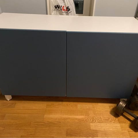 Högsta skåpet är 193 cm högt och det något lägre skåpet är 129 cm. Övriga är 64 cm höga.