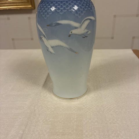 Bing & Grøndahl vas med fågelmotiv. Tillverkad i porslin med detaljer i relief som visar flygande fåglar. Passar som dekorativ inredningsdetalj.