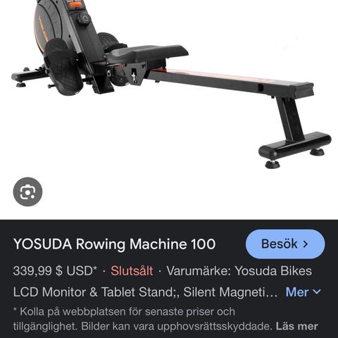 WaterRower Rower träningsmaskin med vattenmotstånd. Utrustad med digital display för tid, distans och kaloriförbrukning. Sits och handtag för roddövningar. Designad för hemmaträning och konditionsövningar.