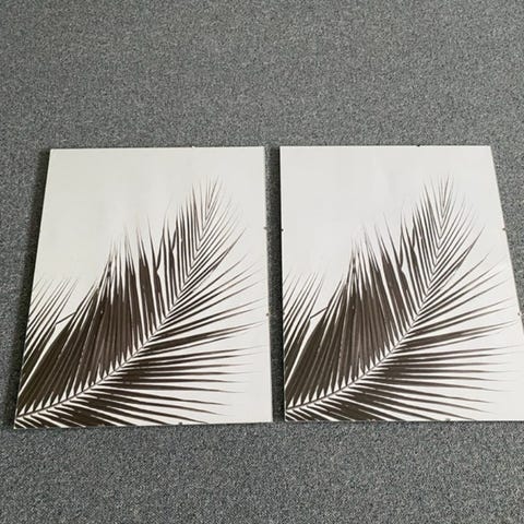 2st nya tavlor på vitduk på trästomme. IKEA.