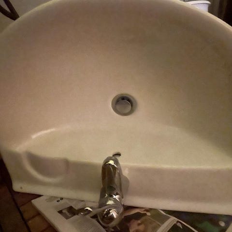 Handfat i porslin med tvågreppsblandare komplett med väggfäste och kromat vattenlås